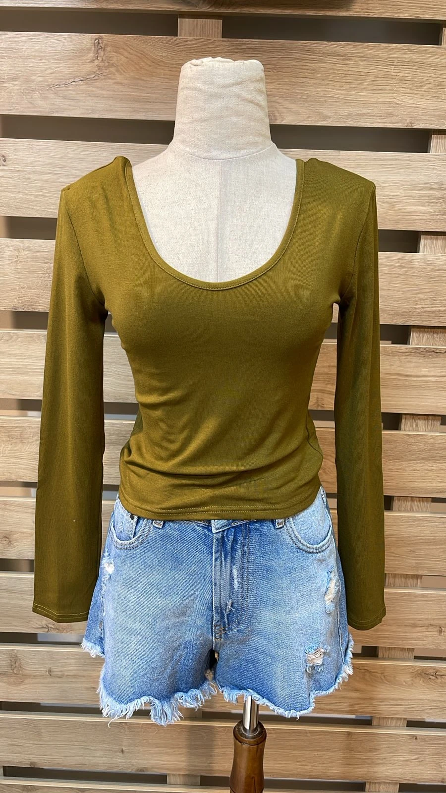Wide V-neck Khaki Top