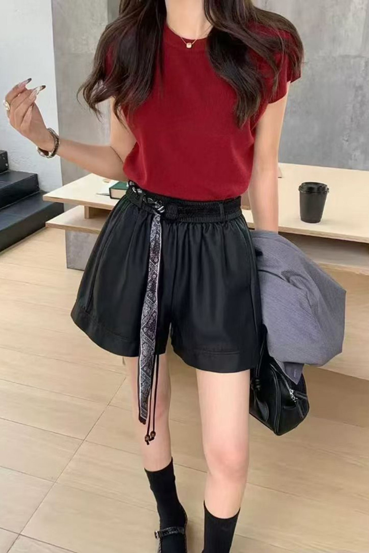 Scarf Belted Black Shorts