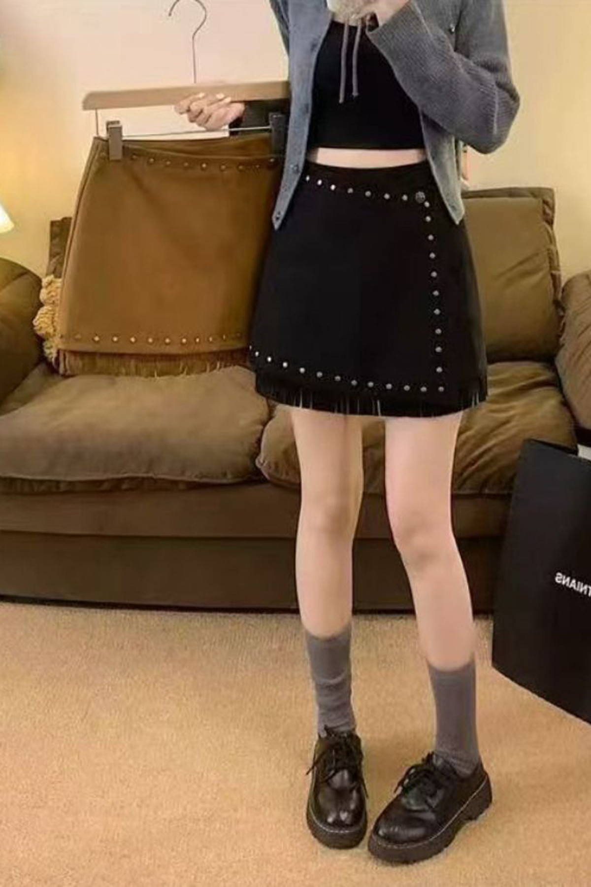 Pins & Fringes Black Skort