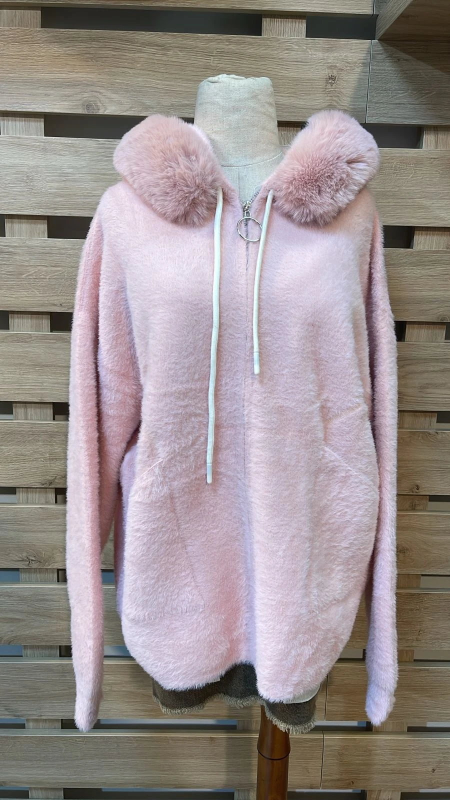 Fur With Pockets Wool Pink Jacket