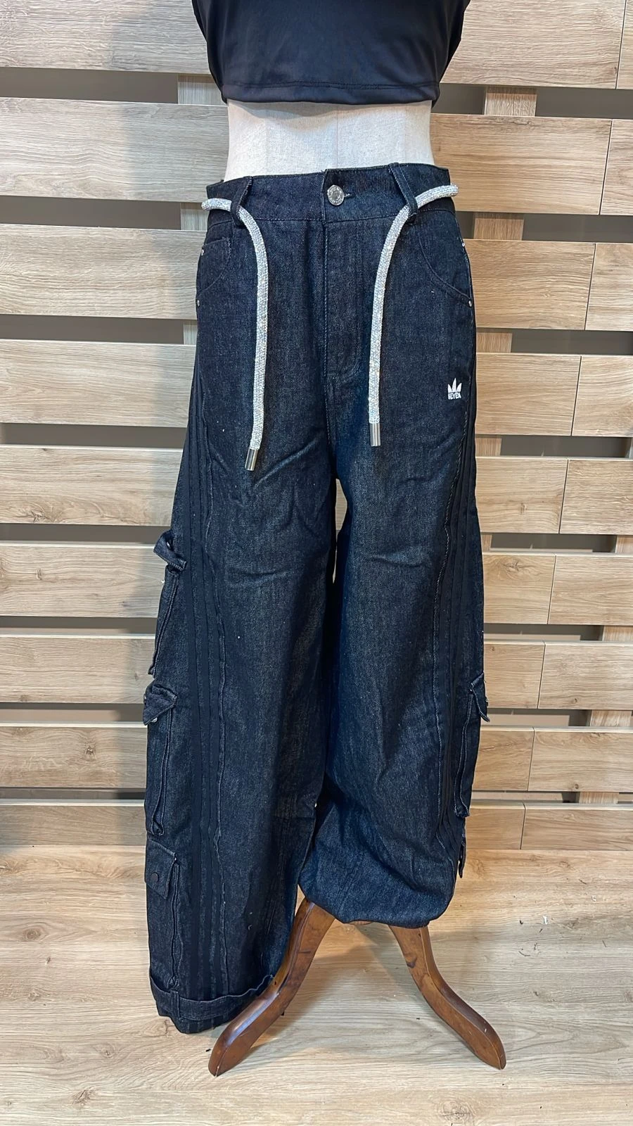 Silver Belted Cargo Black Pants