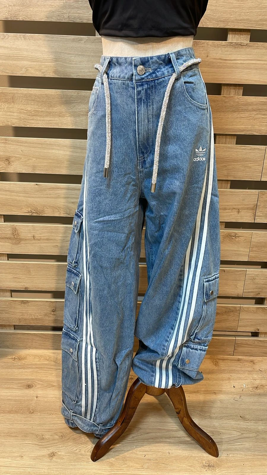 Silver Belted Cargo Blue Pants