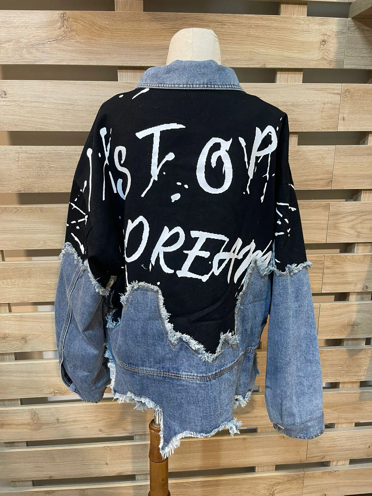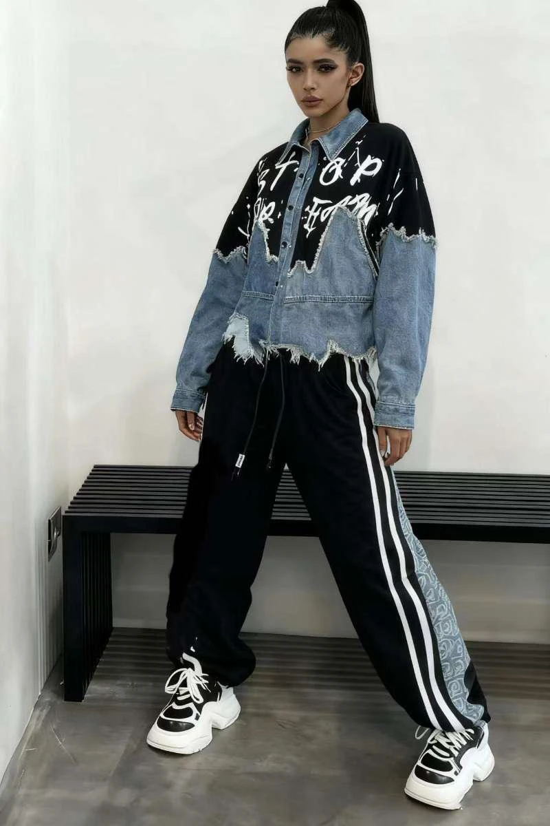 White Detailed Half Denim Half Black Jacket