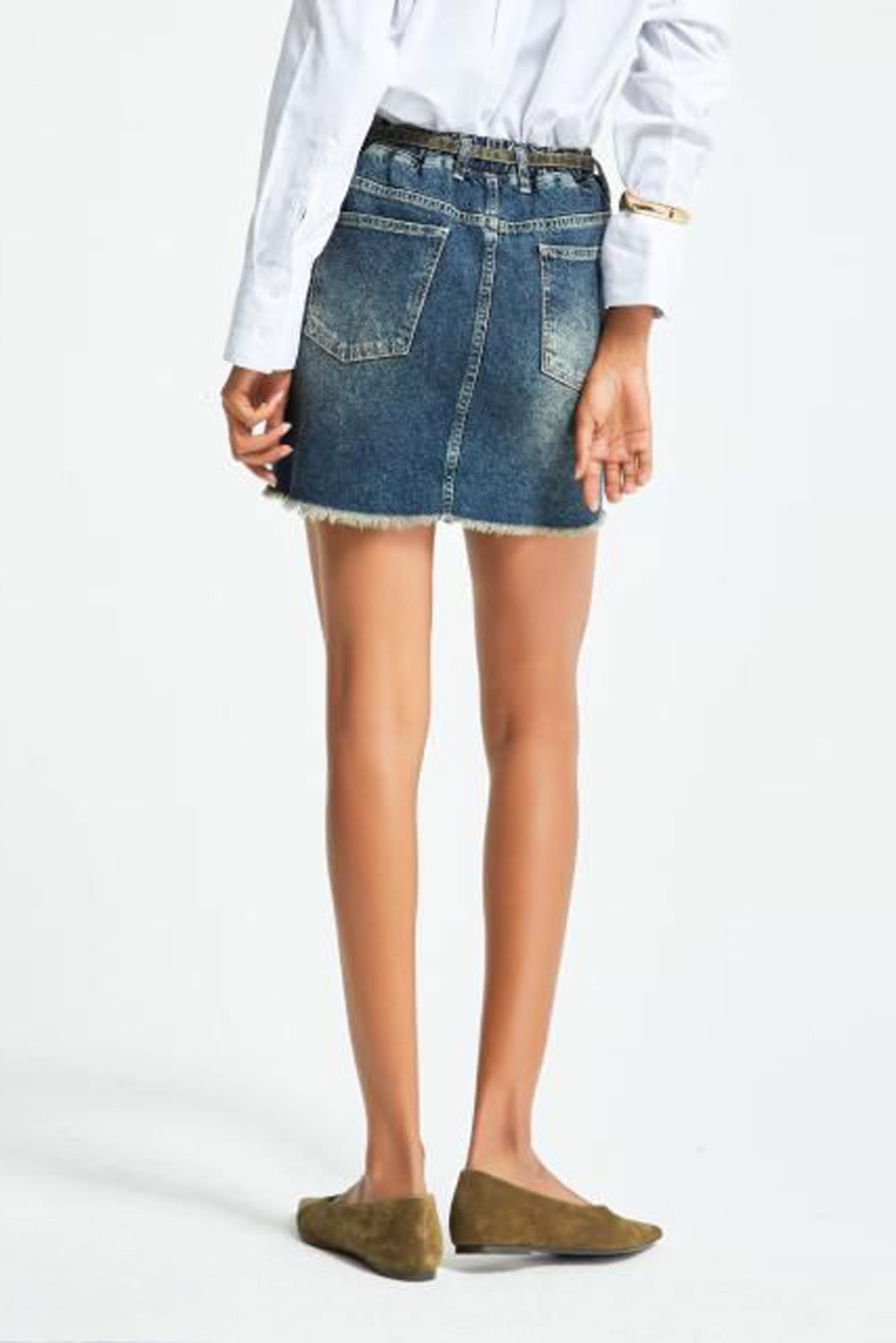 Olive Detailed Blue Denim Skirt