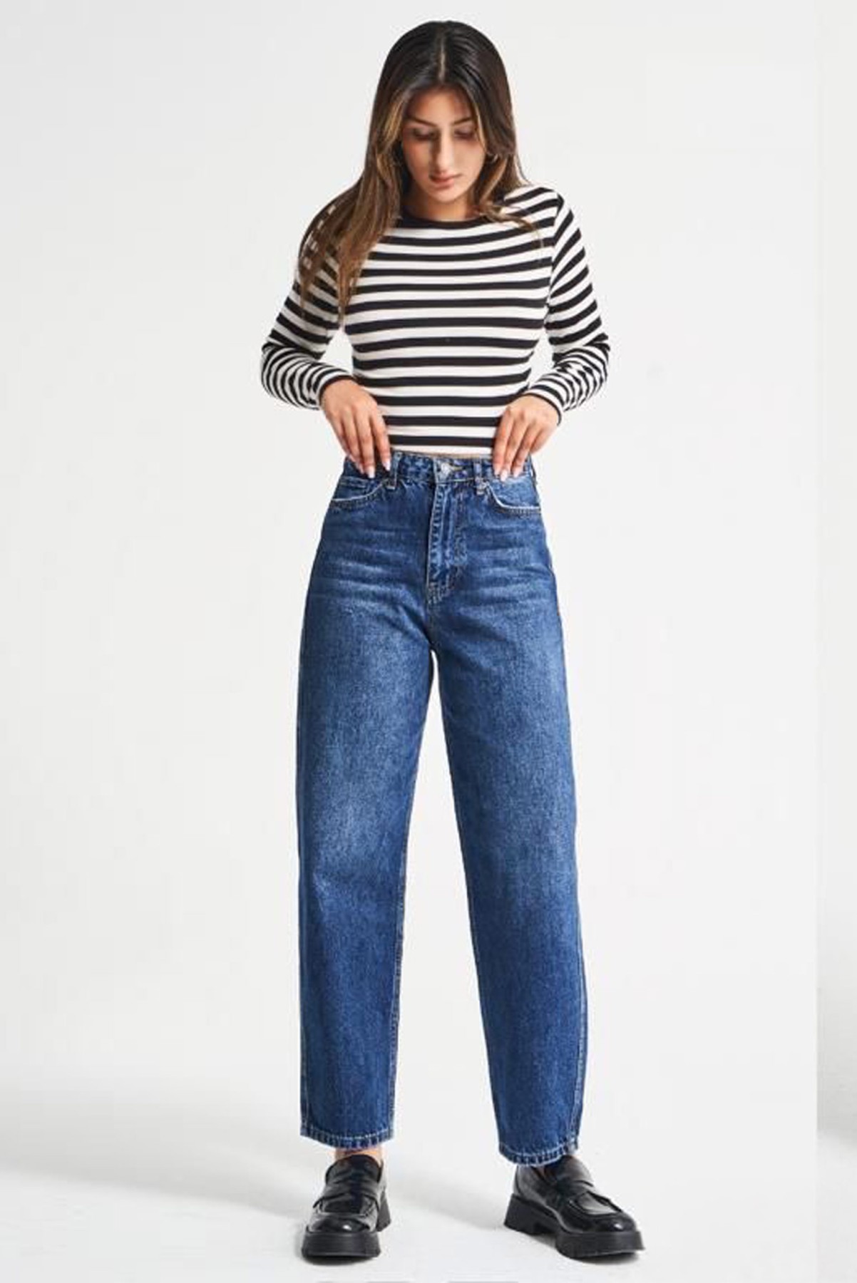 Plain Mom Fit Blue Jeans