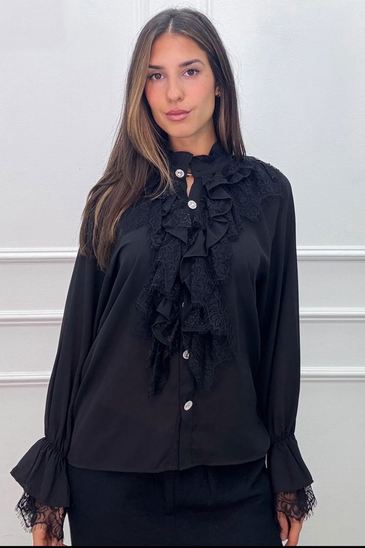 Ruffled Detailed Black Shirt