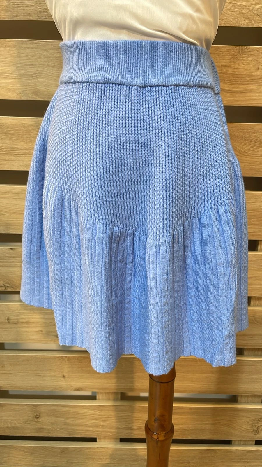 Thin Upper Pleats Blue Skirt