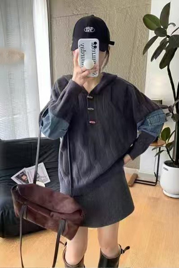 Denim Sleeves Anthracite Knitwear