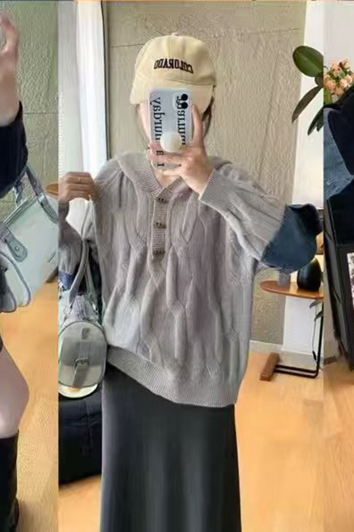 Denim Sleeves Grey Knitwear