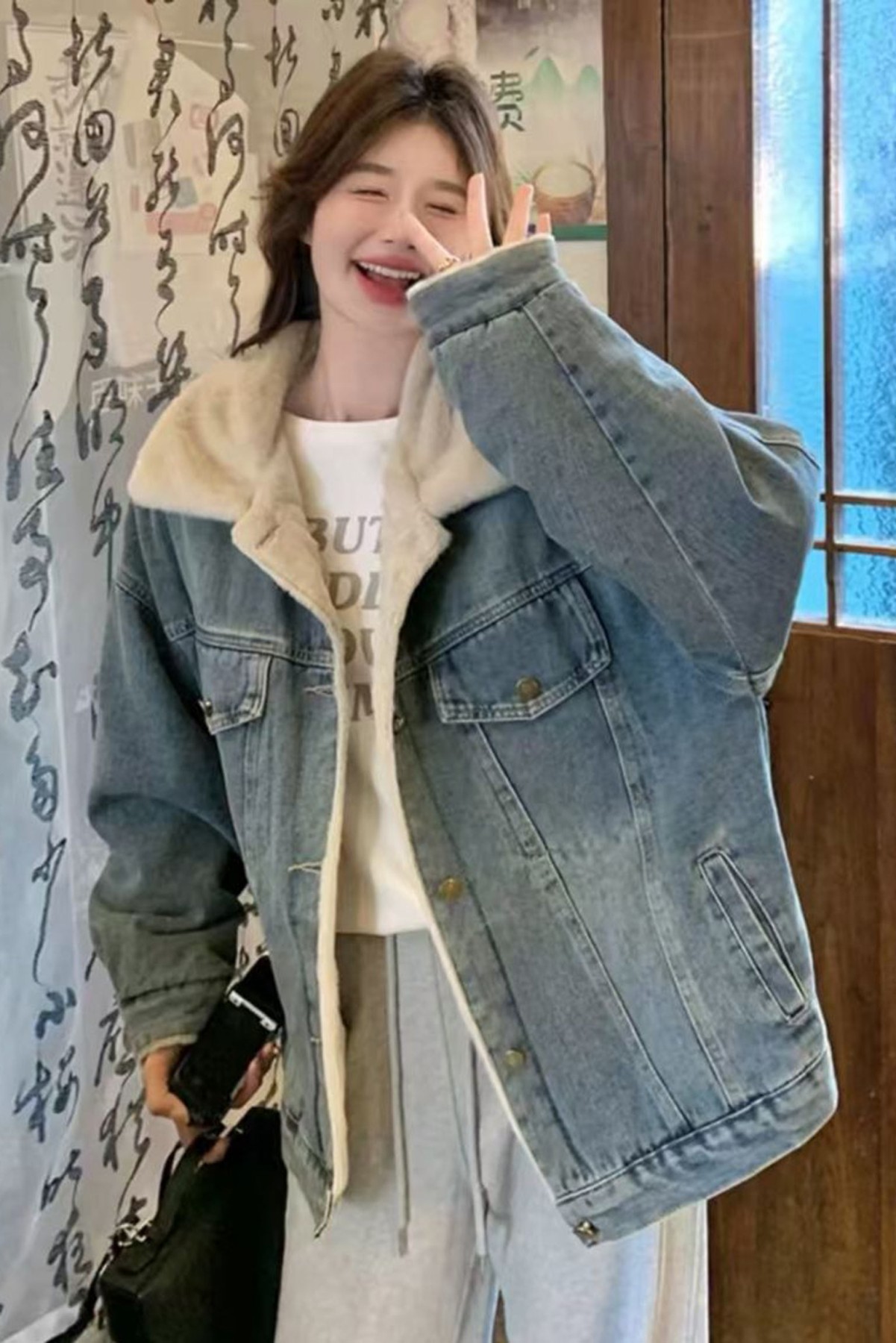 Fur Inside Light Blue Jacket