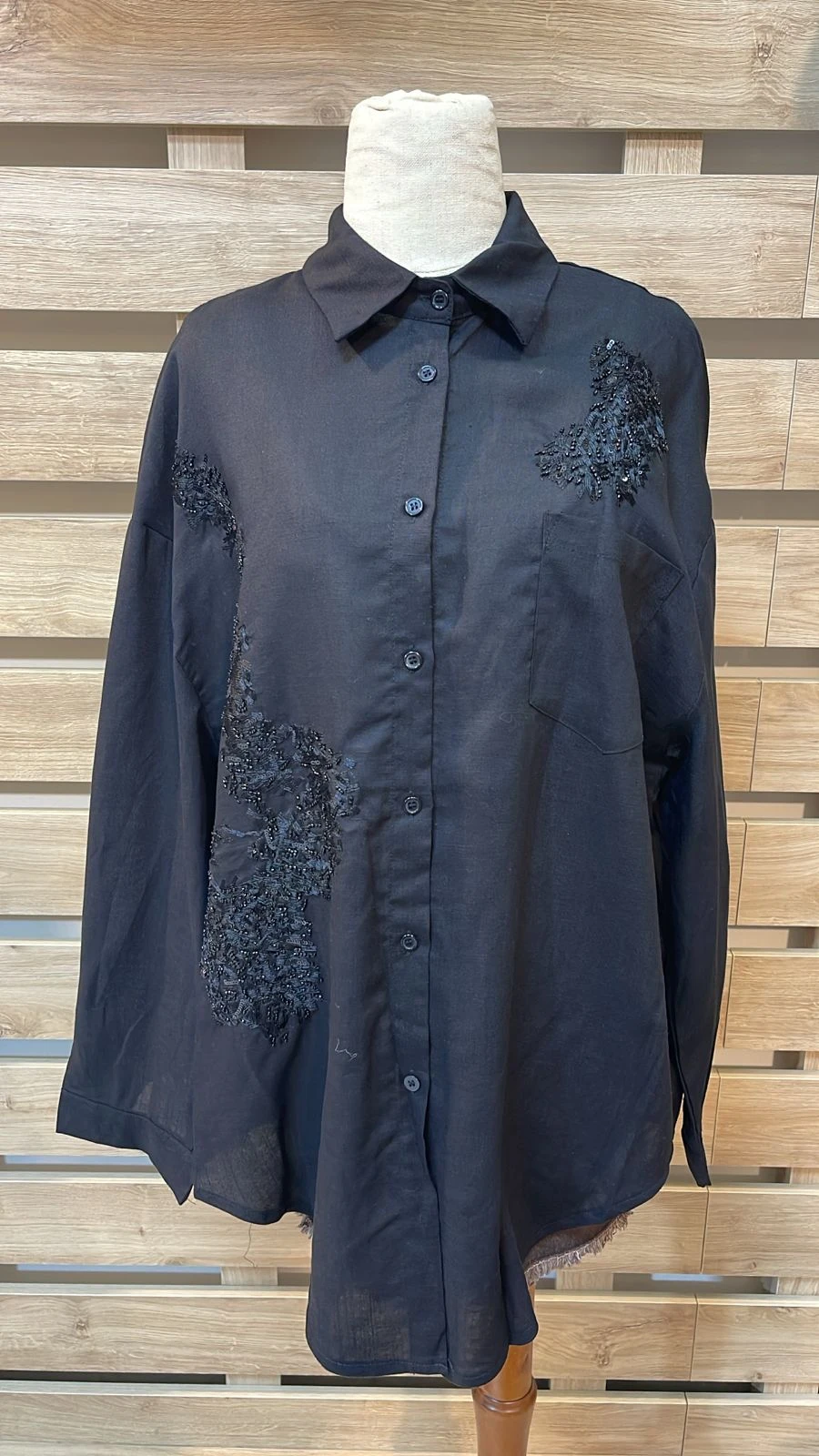 Paillette Detailed Black Shirt