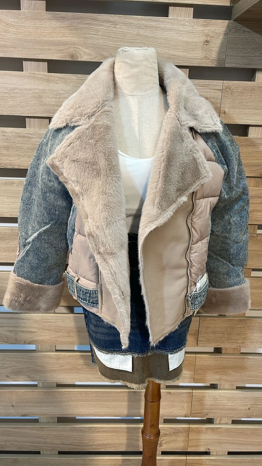 Beige Fur Blue Denim Jacket