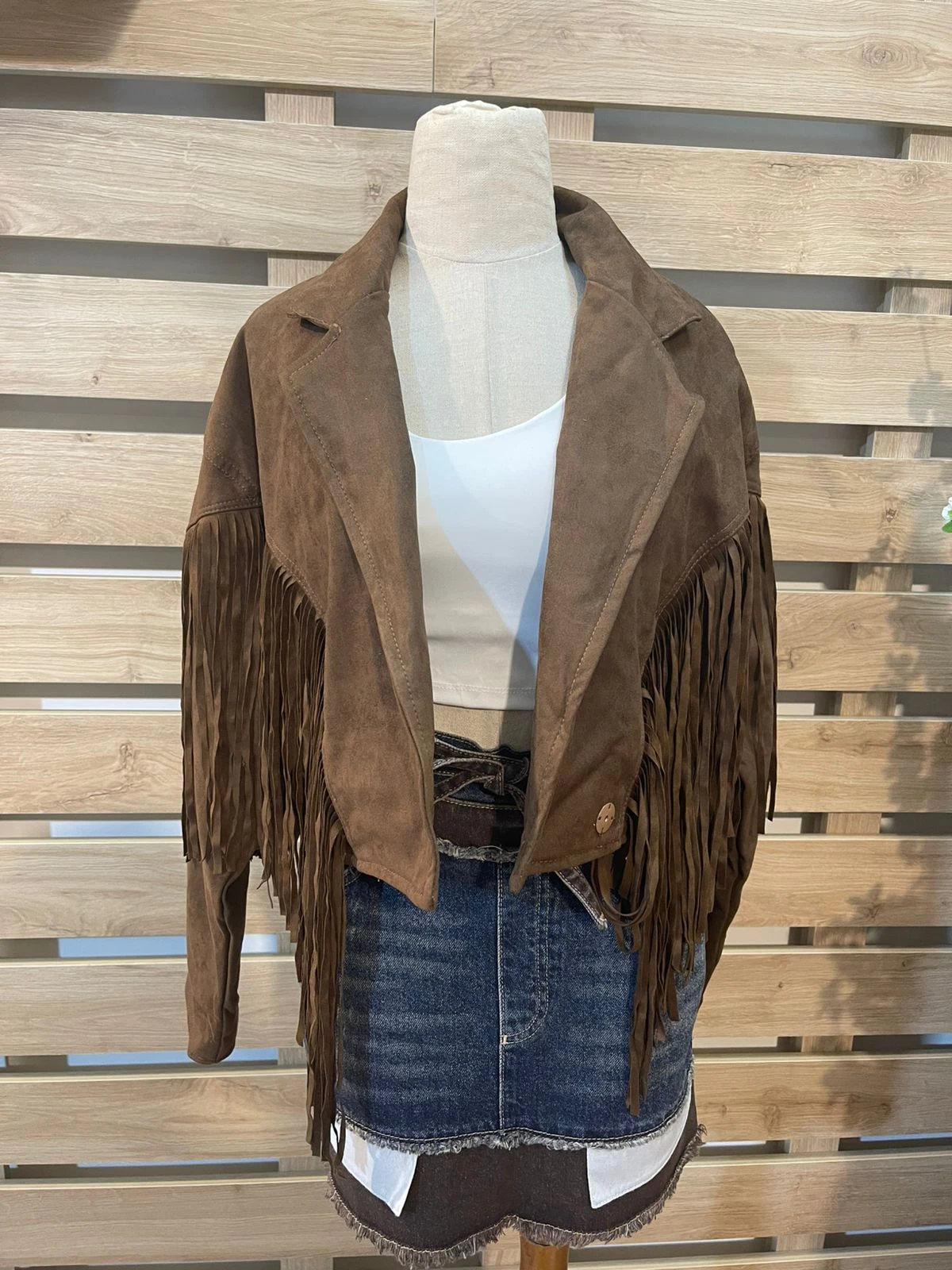 Fringes Detailed Cropped Brown Jacket
