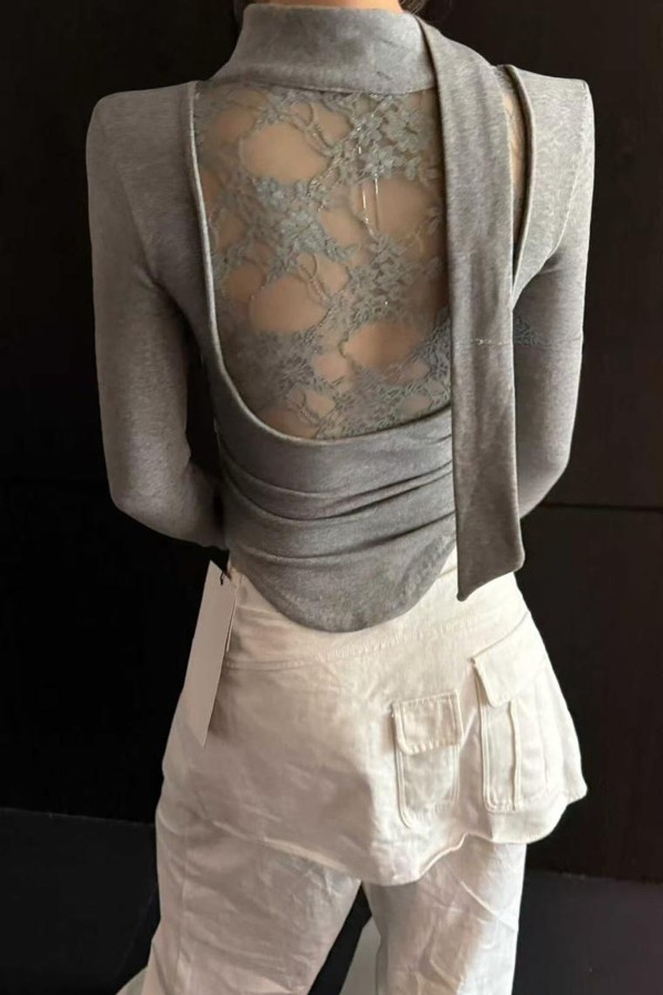 Lace Back With Front Tie Grey Top