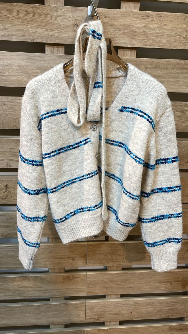 Blue Striped Beige Cardigan
