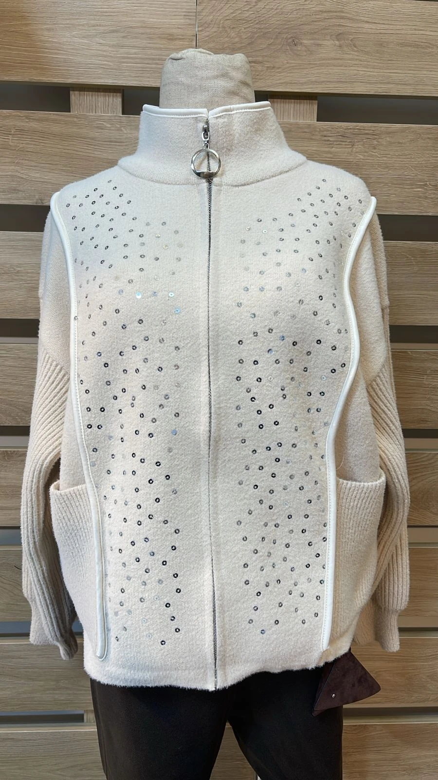 White Striped & Dotted Ecru Cardigan