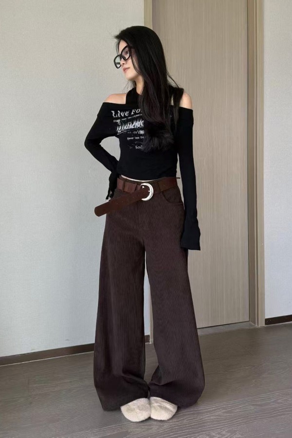 Brown Belted Velvet Brown Pants