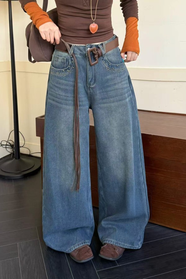 Silver Pocket Pins Detailed Dark Blue Fleece Jeans