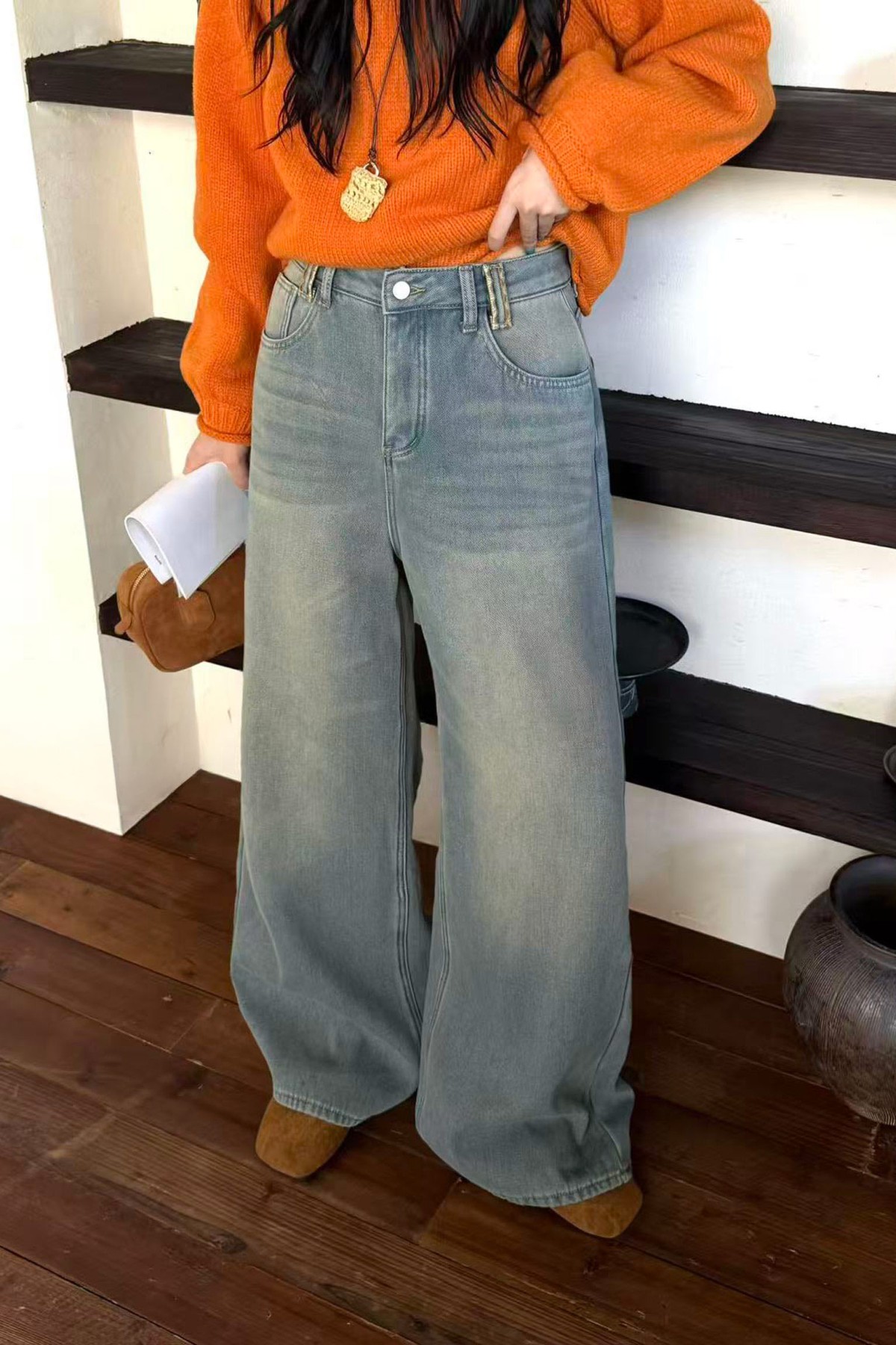 Braided Belted Light Blue Fleece Jeans