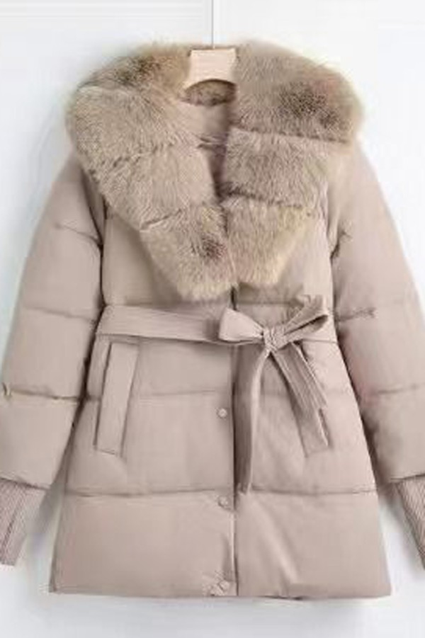 Fur Collar Buttoned Beige Jacket