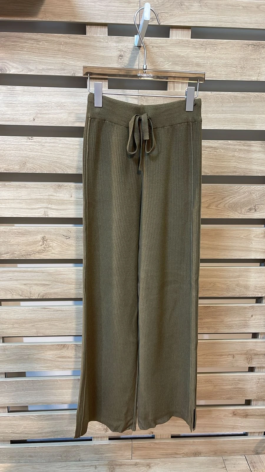 Elastic Waist Ribbed Olive Wool Pants