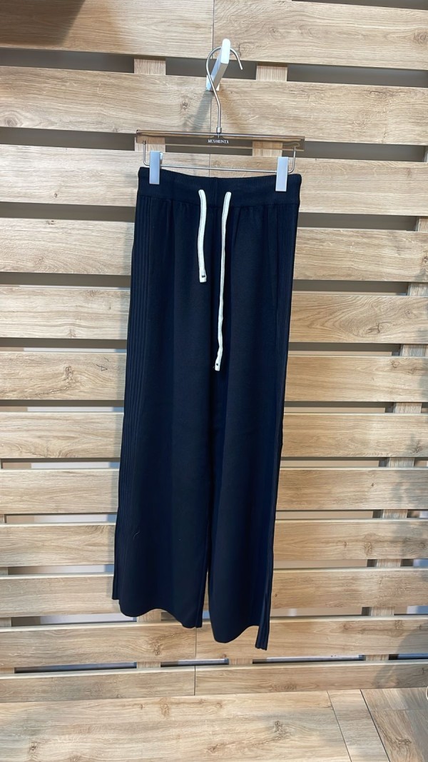 Side Detailed Black Wool Pants