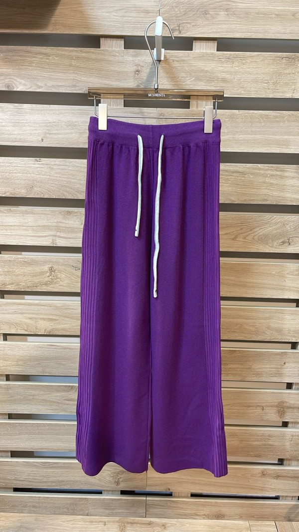 Side Detailed Purple Wool Pants