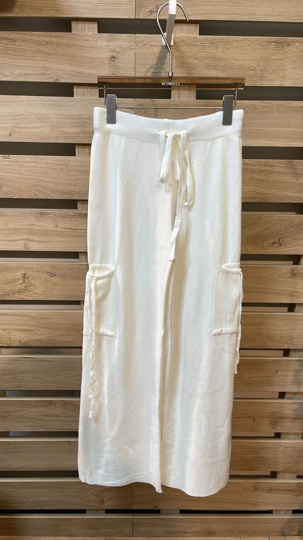 Side Pockets White Wool Pants