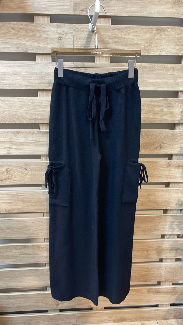 Side Pockets Black Wool Pants