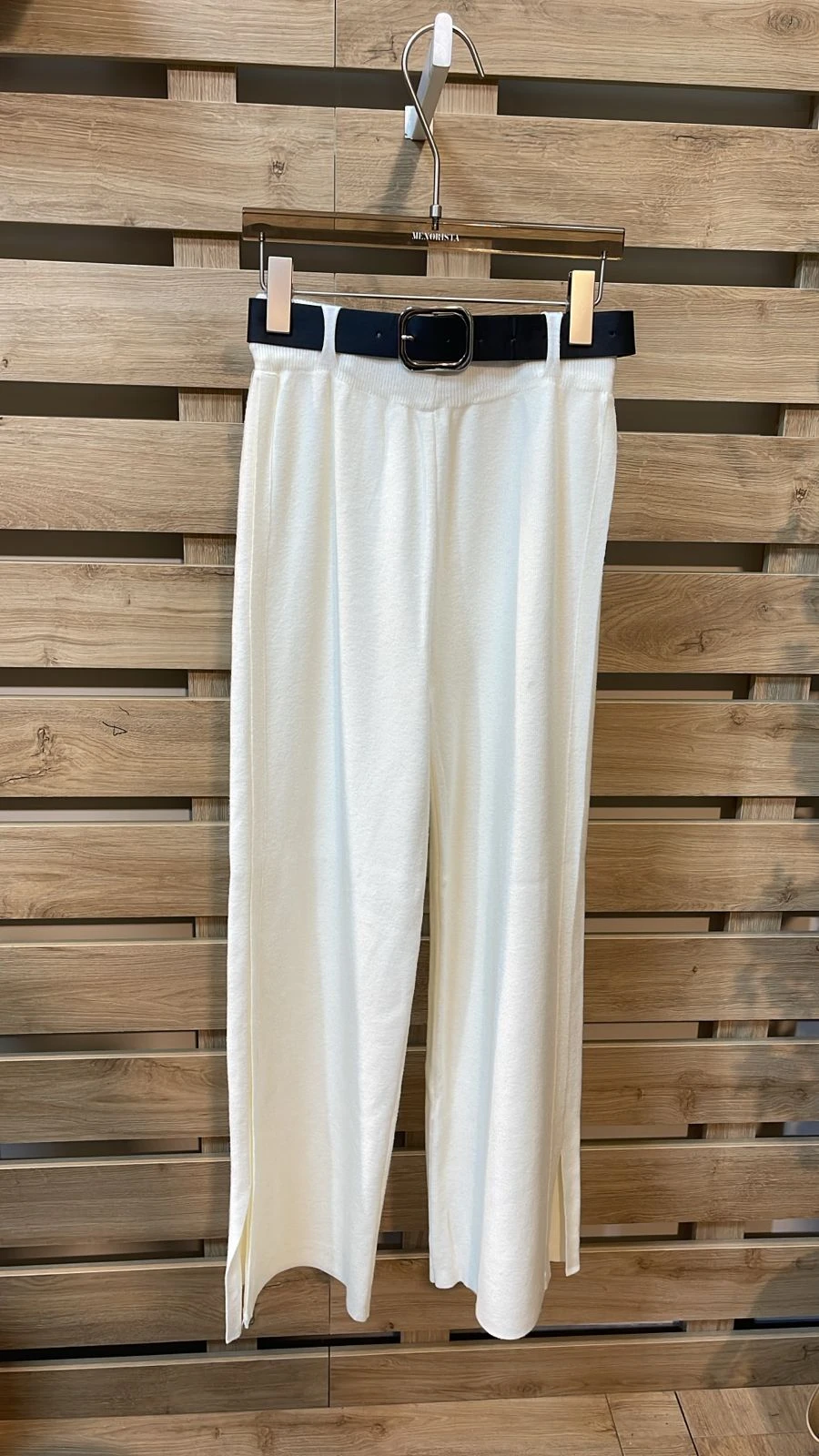Belted Ecru Wool Pants