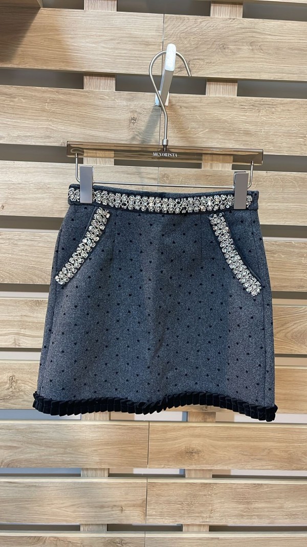Silver Waist and Pocket Detailed Dark Grey Skirt