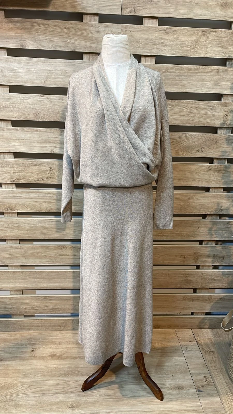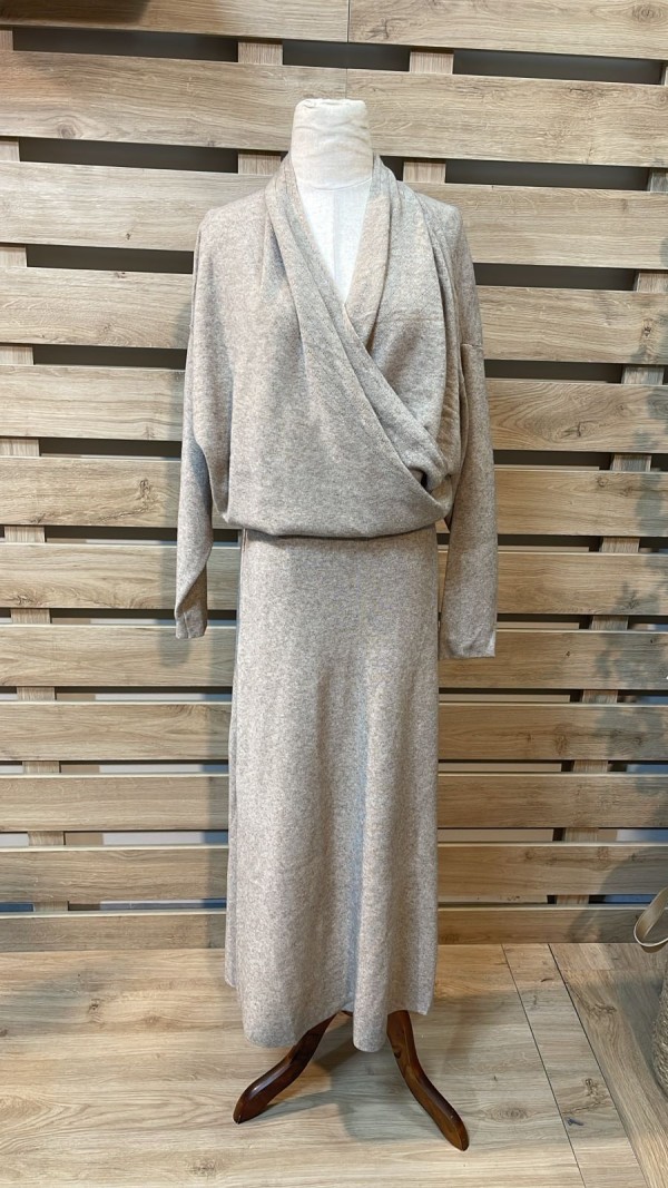 Crossed Top & Plain Skirt Beige Set