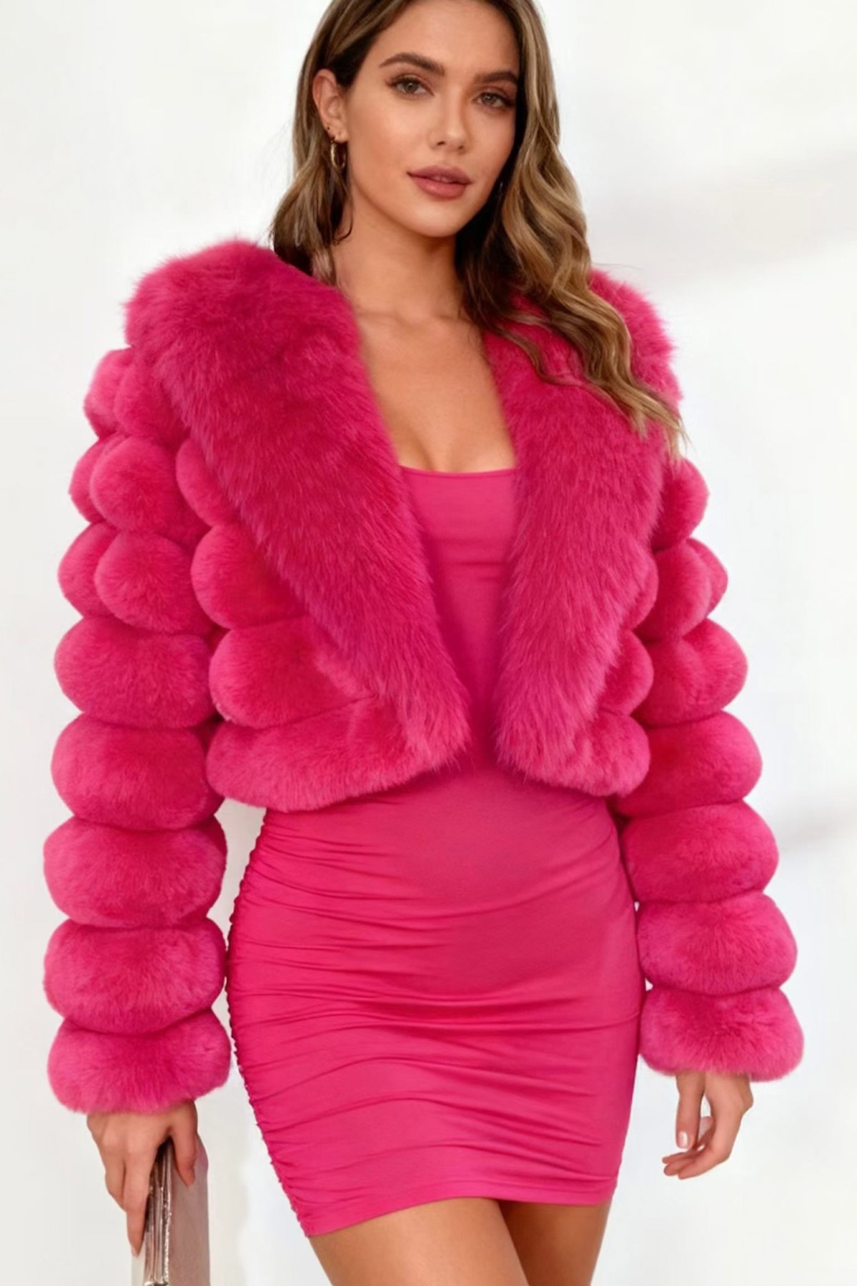 Loose Fit Faux Fur Bright Coral Jacket