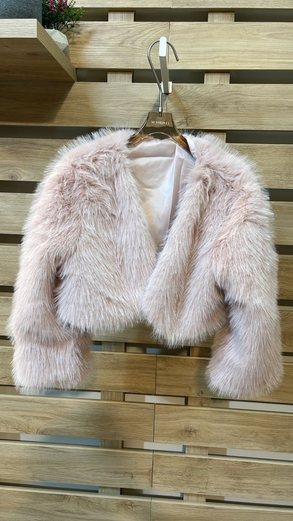 Cropped Faux Fur Pink Jacket