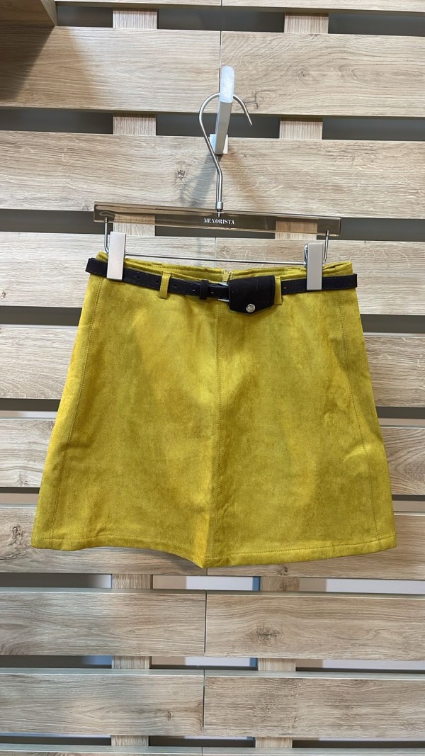 Brown Belted Mustard Skirt