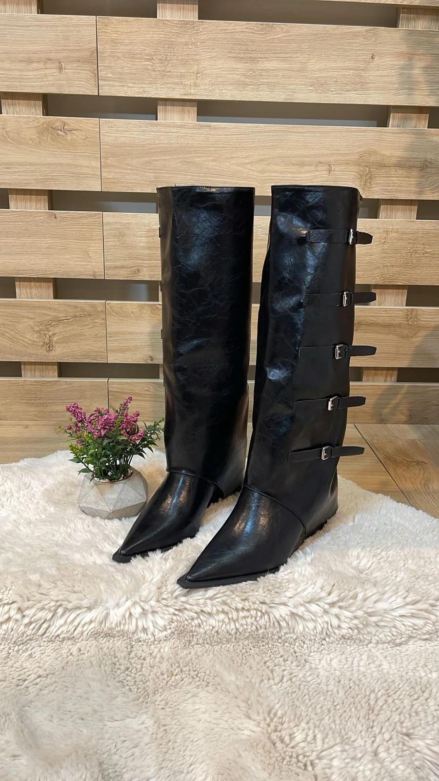 Black Multi-Buckle Leather Boots