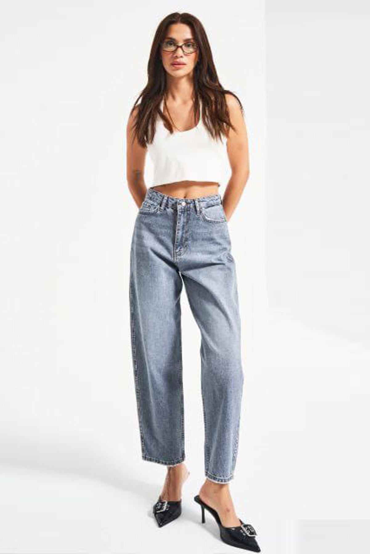 Mom Cut Blue Jeans