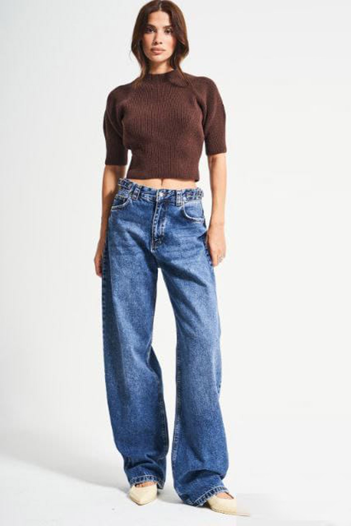 Mini Side Belted Wide Leg Blue jeans