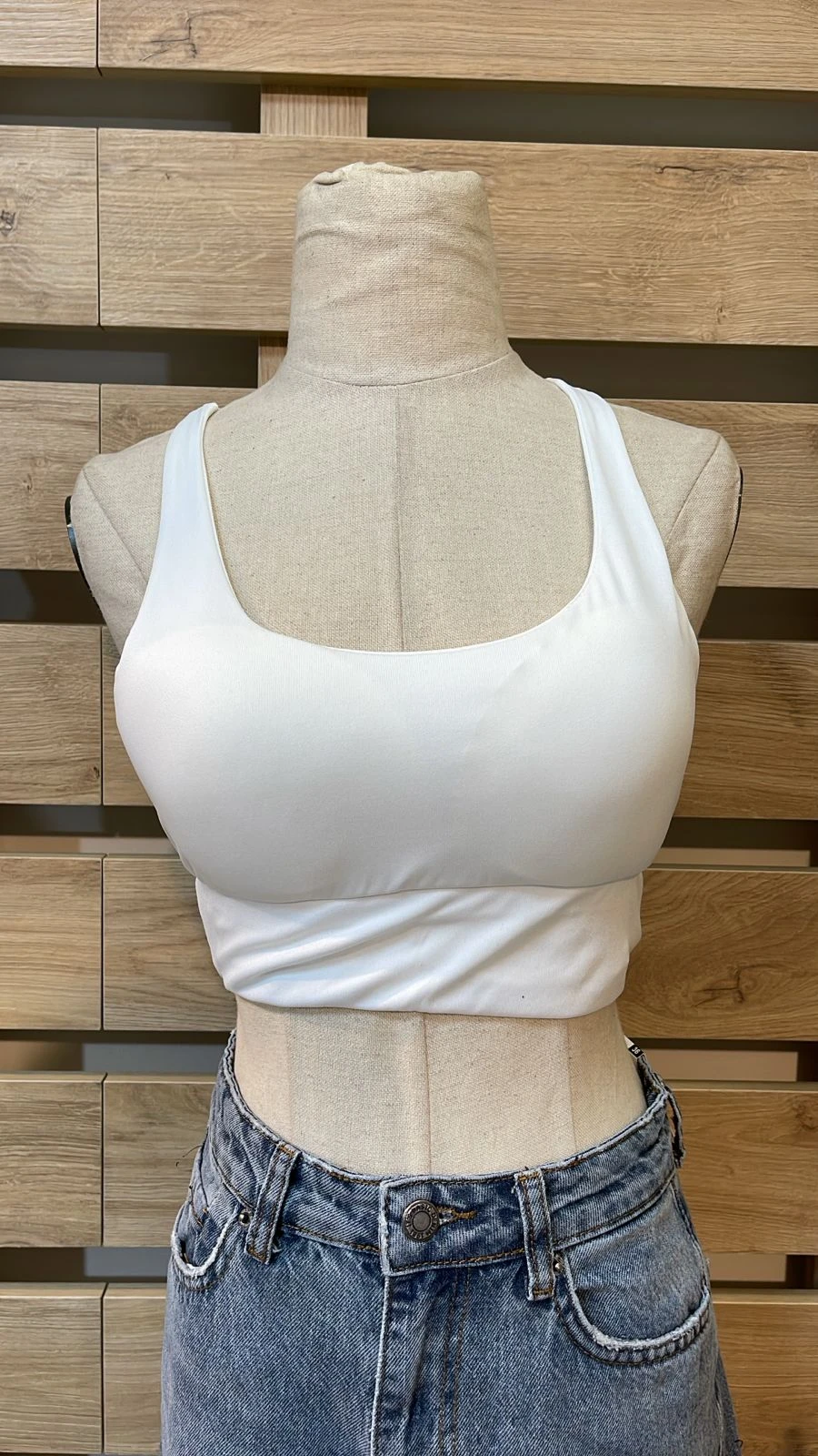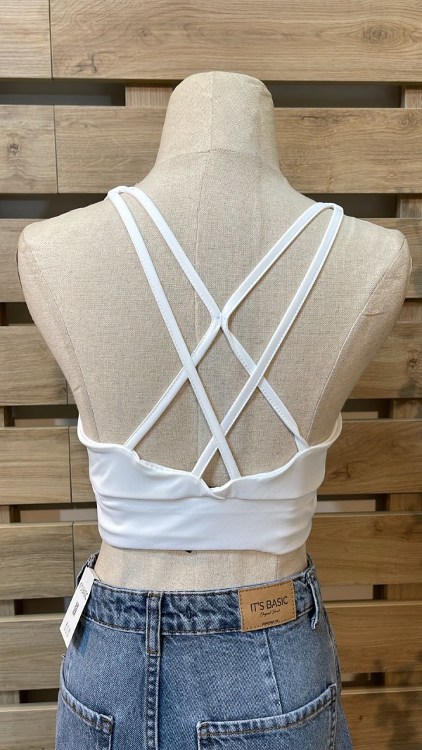 Double Crossed Back White Crop Top