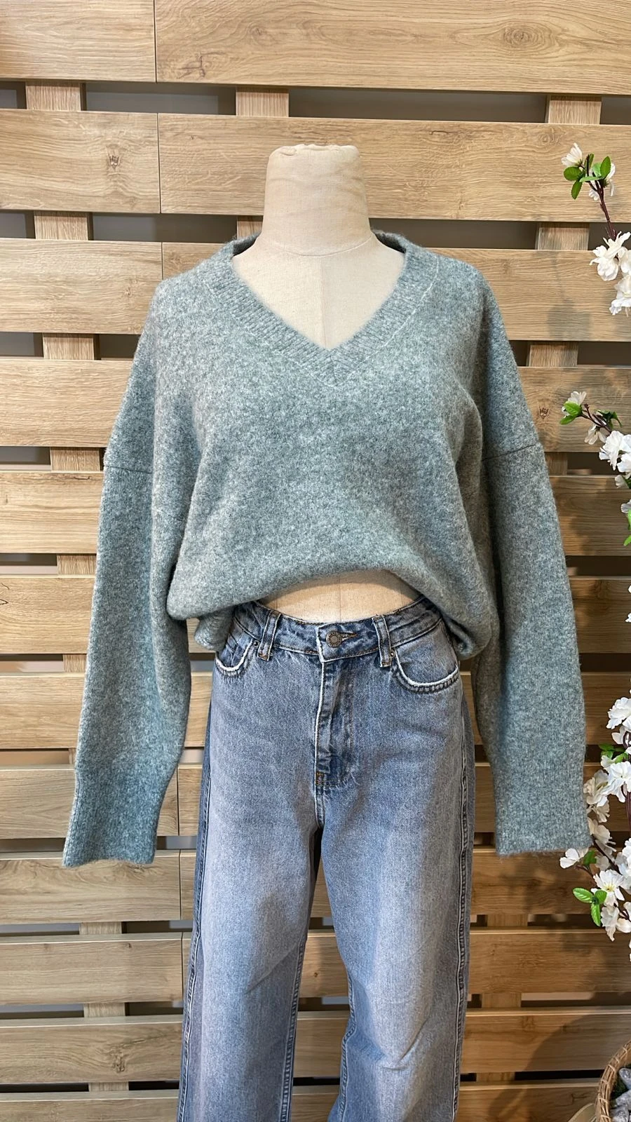 V-neck Greyish Blue Knitwear
