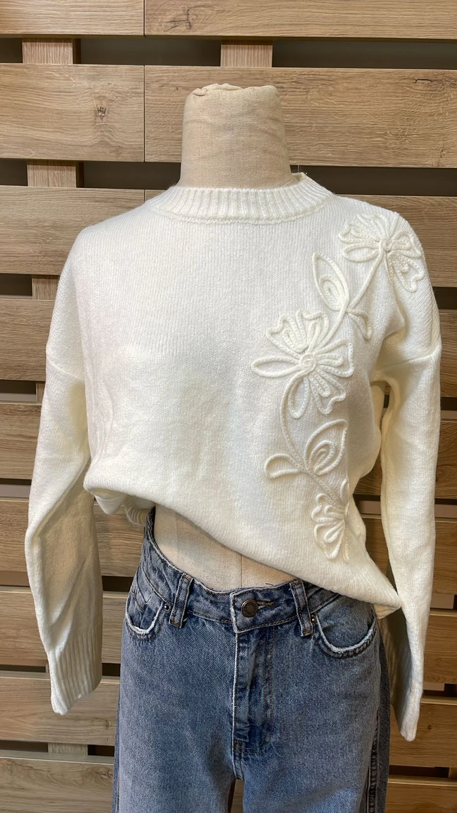 Side Flower Detailed White Knitwear