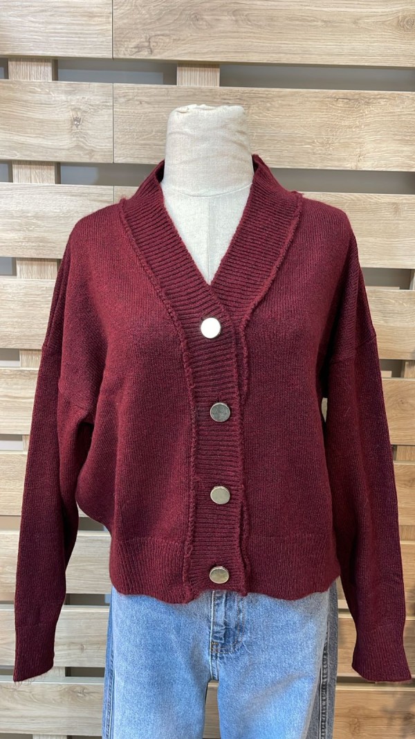 Plain Bordeaux Cardigan