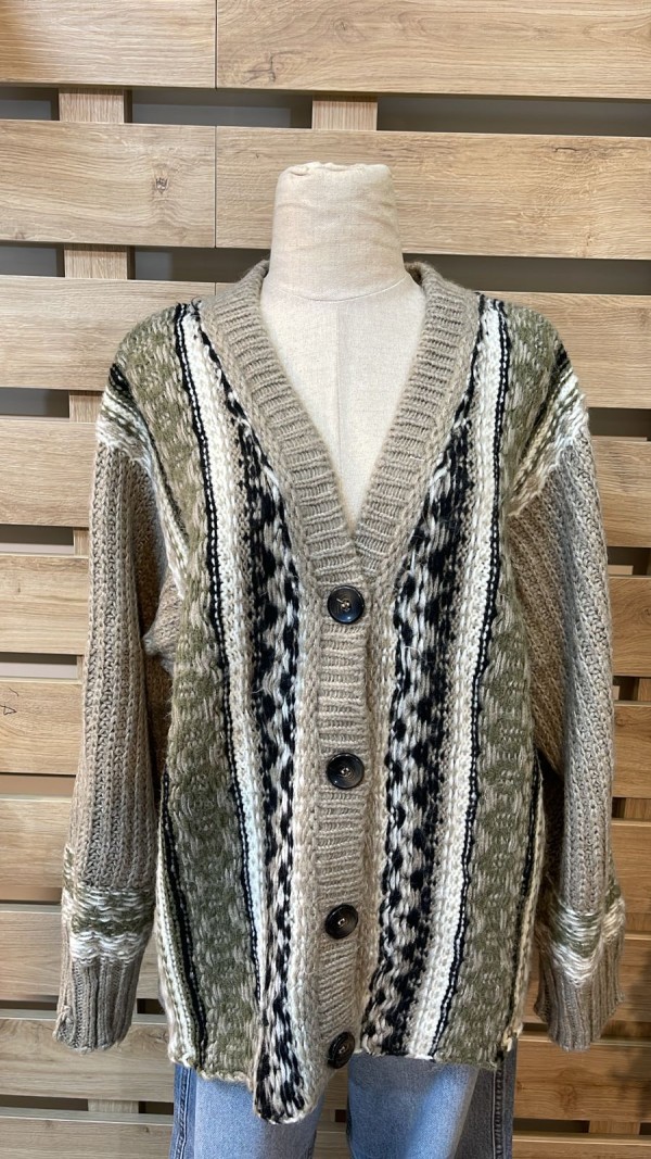 Colorful Patterned Mocha Cardigan