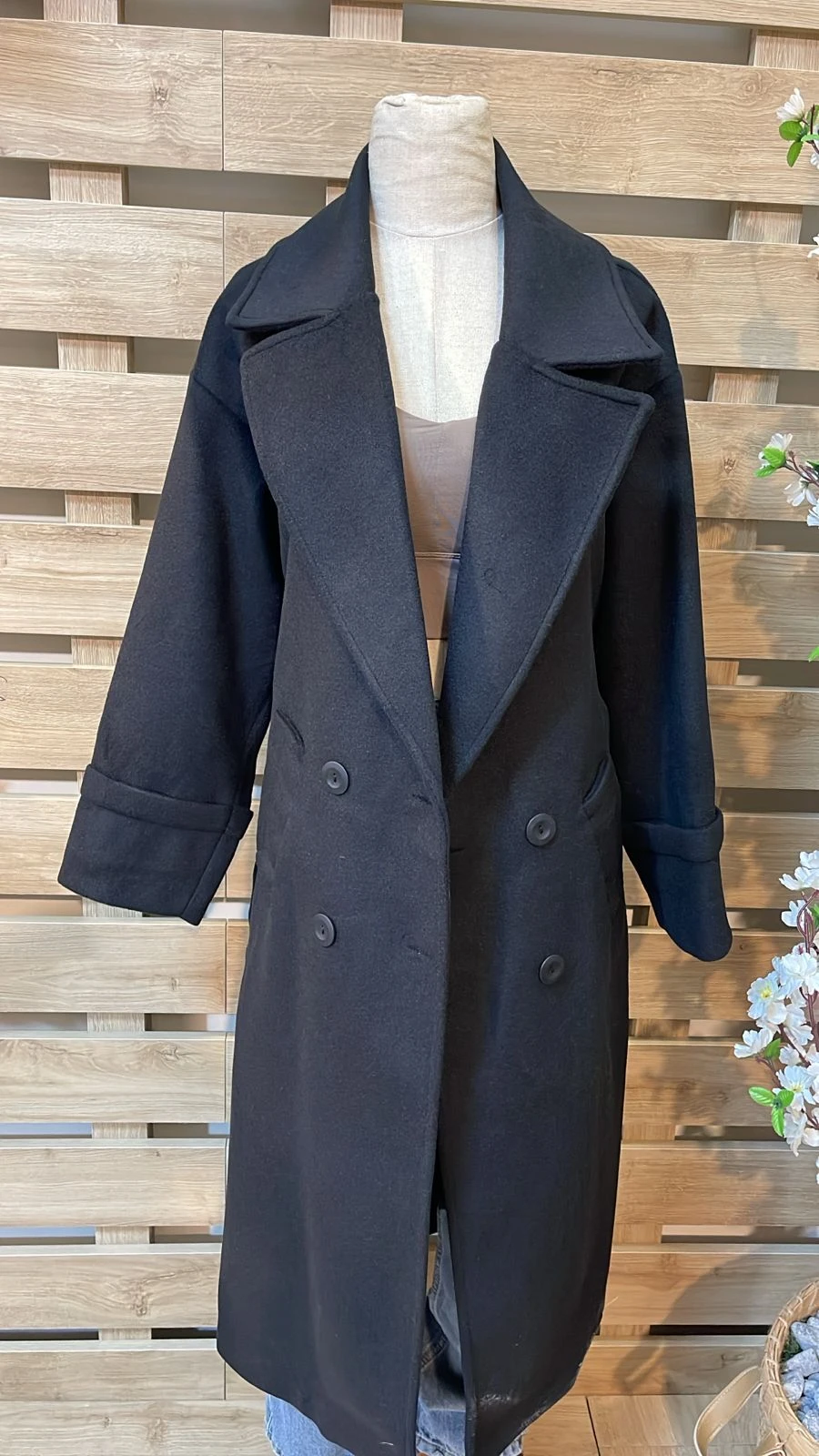 Buttoned Belted Black Coat
