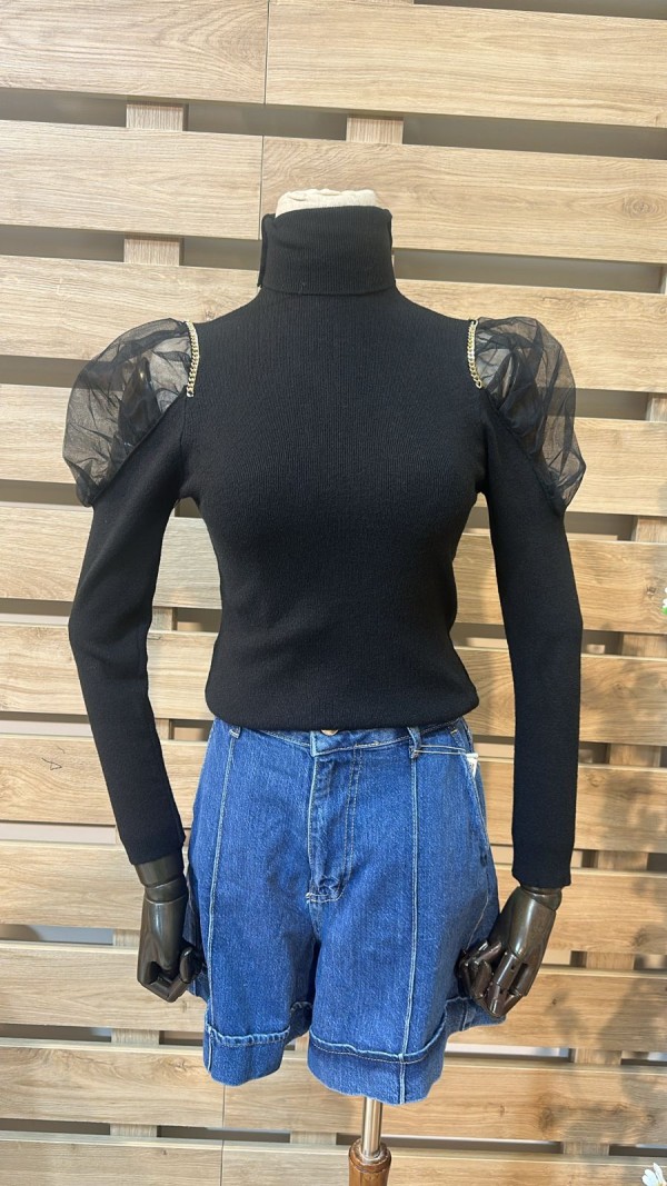 Mesh Shoulders Black Top