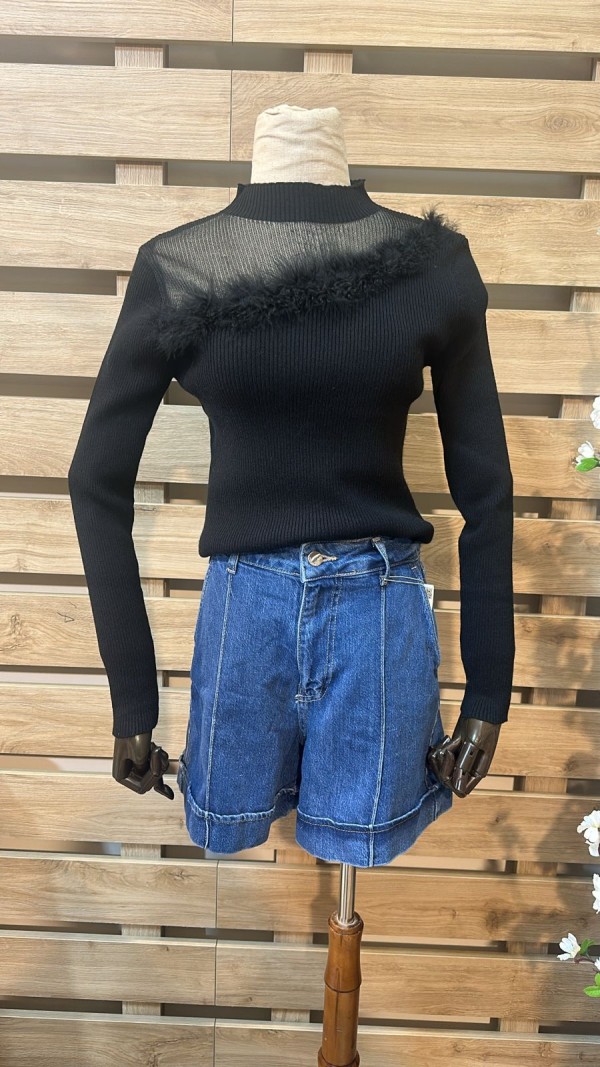 Feathers Detailed Black Top