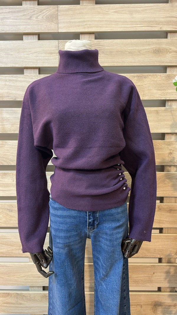 Side Ruffle Buttoned Purple Knitwear