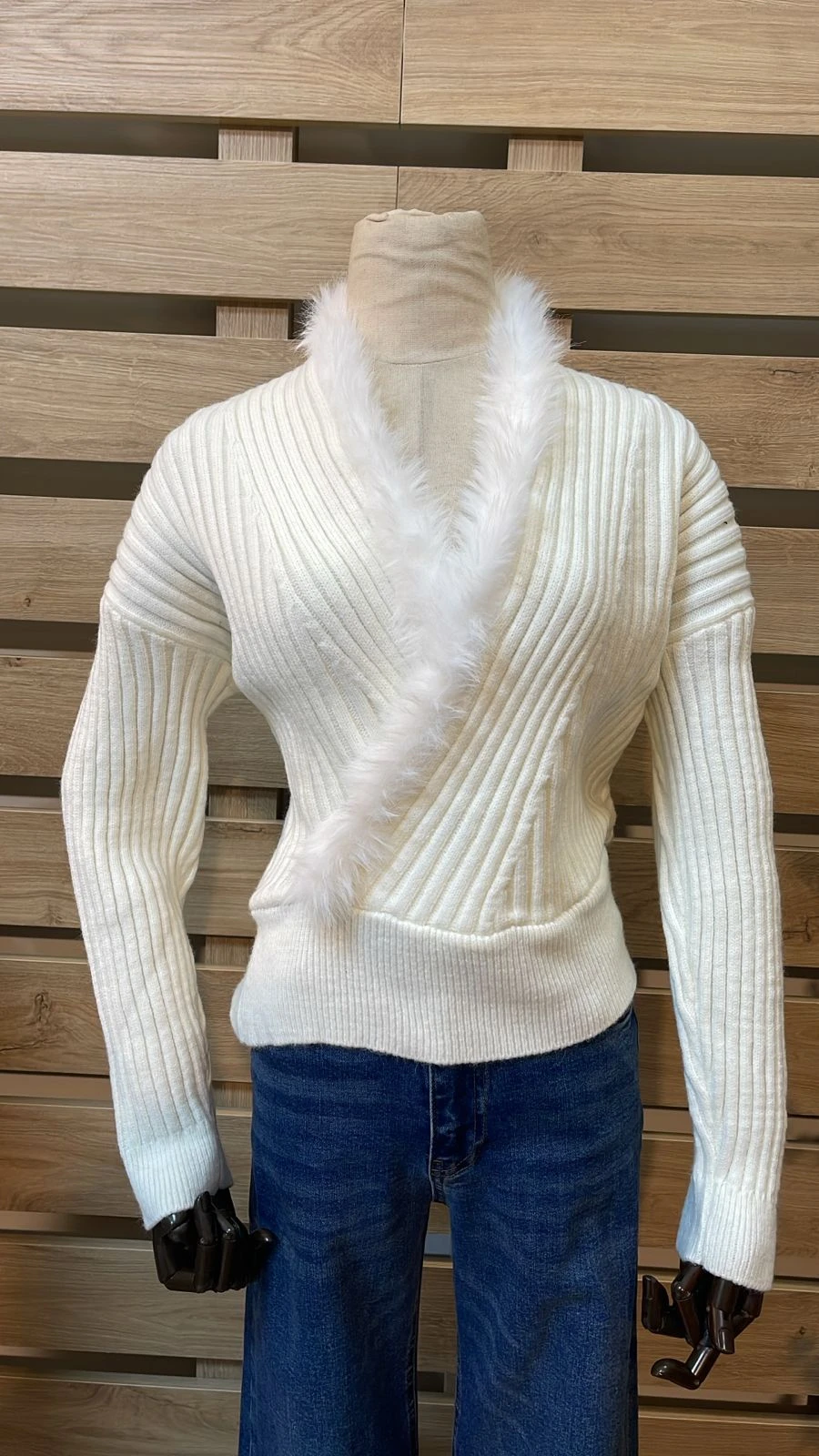 Asymmetric Fur Ecru Knitwear