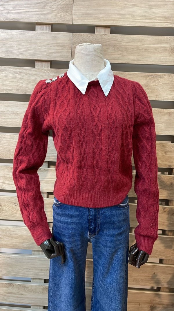 White Collar Bordeaux Knitwear