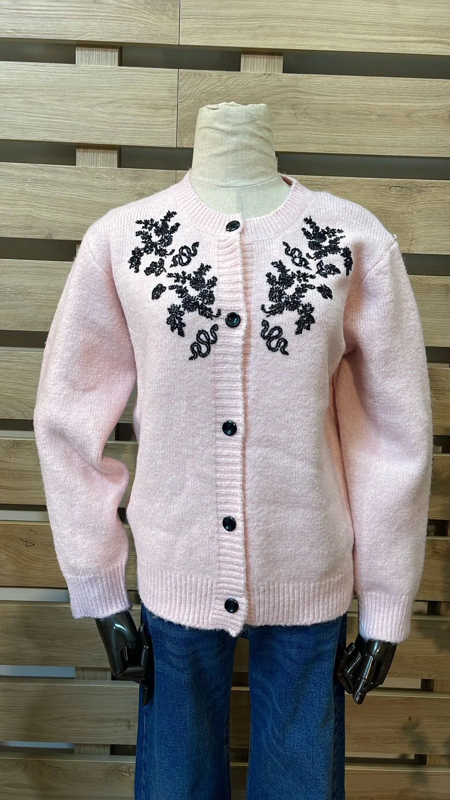 Black Chest Detailed Pink Cardigan